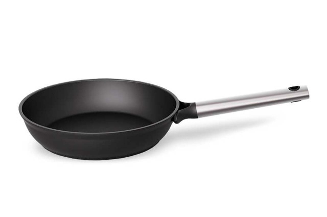 Сковорода Maestro MR 1227-24 диаметром 24 см, бортик высотой 5,5 см. Корпус изготовлен из литого алюминия имеет стальной антидеформационный диск, позволяющий использовать данную модель в том числе и на индукционных плитах (hole induction). Внутри сковороды нанесено устойчивое антипригарное покрытие. Стильная, удобная ручка из нержавеющей стали.