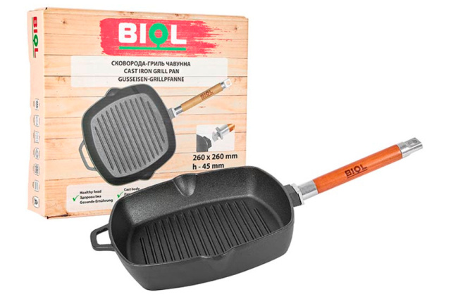 Сковорода-гриль чугунная Biol 260 x 260мм съемная ручка (1026), Вінниця