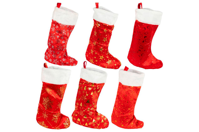 Новогодний носок для подарков из мягкого флокового материала с блестящим праздничным декором. Украшен узорами и белой меховой окантовкой, что...