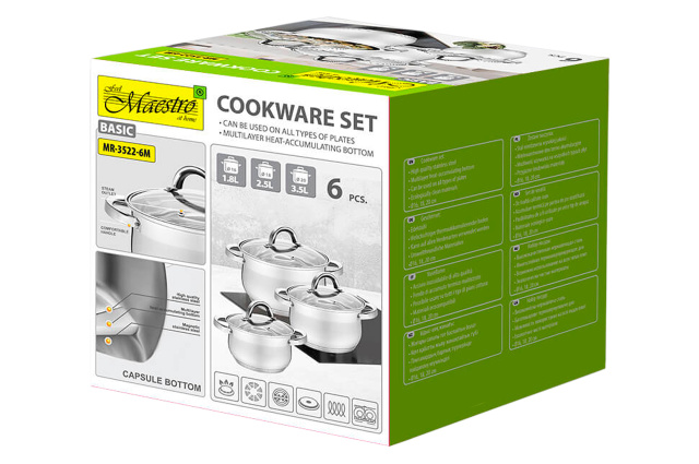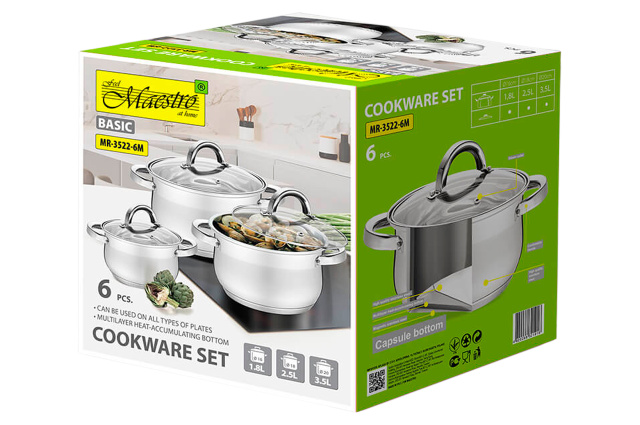 Набор посуды нержавеющий Maestro 1.8 x 2.5 x 3.5л (3шт) (MR-3522-6M), Вінниця