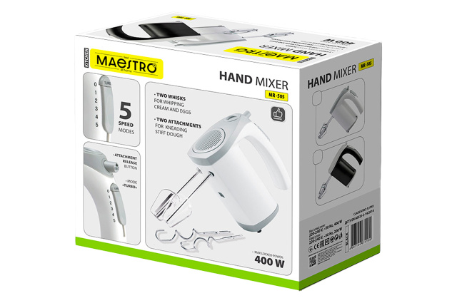 Миксер ручной Maestro 400Вт белый (MR-505-WHITE), Вінниця