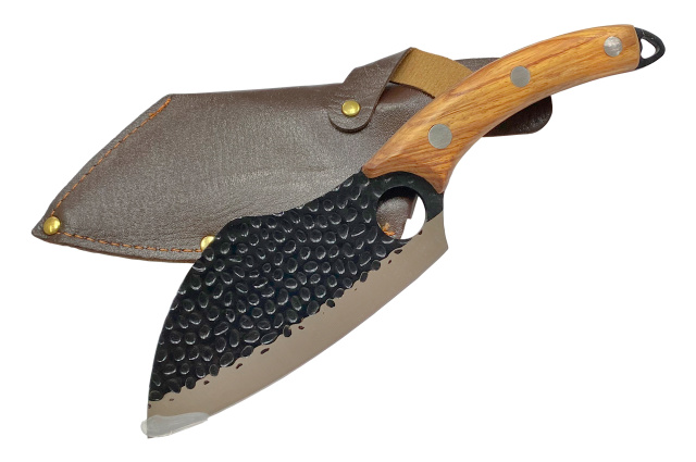Нож-топорик кухонный кованый KingGary 260мм обвалочный кожаным чехлом (SF-1-2492), Вінниця