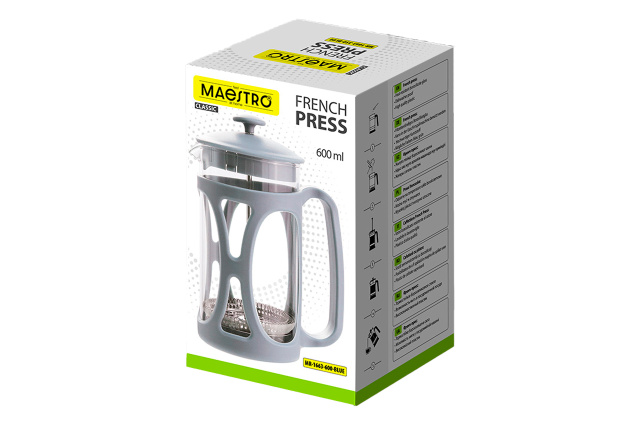 Френч-пресс Maestro 600мл X пластик небесный (MR-1663-600-BLUE), Вінниця