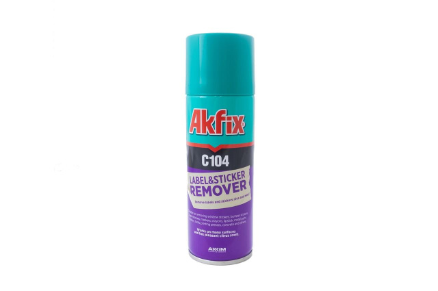 Akfix C104 - спрей для удаления наклеек, ярлыков, этикеток и остатков клея с поверхностей. Свойства Akfix C104: спрей непосредственно проникает в поверхность наклеек и быстро размягчает клей; не повреждает краску и пластиковые поверхности; обеспечивает быстрое удаление; создает защитный слой на поверхностях; работает на большинстве типов поверхностей; имеет приятный цитрусовый запах.