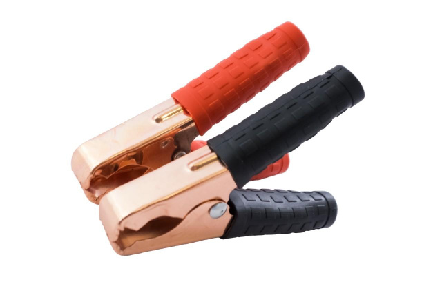 В наборе 2 зажима. Зажимы для клемм аккумулятора изготовлены из алюминия сверху покрытого медью, длина - 11 см, расстояние между ручками – 9 см, обрезиненные ручки красного и чёрного цвета. Красныый подключается к положительной клемме АКБ, а чёрный - к отрицательной.