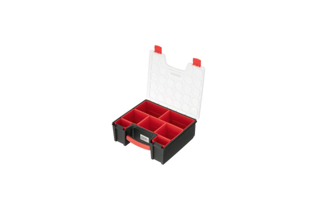 Удобный и вместительный органайзер BX-4032 (31.5х27х11 см) подходит для хранения и транспортировки небольших предметов (крепежных элементов, мелких инструментов, метизов, фурнитуры, запчастей, рыболовных принадлежностей и прочих мелочей). Особенности: Вместительный органайзер с двумя надежными замками. Ничего не выпадает, не перемешивается, благодаря отдельным секциям. Глубокие съемные лотки (секции), толщиной 11 см, могут применятся как отдельные единицы для хранения мелких деталей вне органайзера. Органайзер изготовлен из прочного, толстого пластика. Вмещает в себе 7 объемных лотков (секций) различных размеров. Большие и меньшие лотки можно менять местами, комбинировать их расположение для максимального удобства использования. В этот органайзер можно положить любой инструмент длиной до 31 см и шириной до 27 см, благодаря съёмным лоткам. Два замка надежно прижимают крышку и не дают пересыпаться даже небольшим деталям. Крышка органайзера изготовлена из прочного полипропилена и устойчива к сколам. Прозрачность помогает быстро находить необходимые предметы. Удобная ручка усилена и повторяет форму руки, что очень удобно при транспортировке. Количество секций: 7 шт; Габаритные размеры: 315х270х110 мм